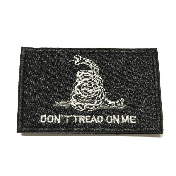 Don't Tread ON ME Gadsden Flag 3.25" Black Embroidered Premium Patch Hook and Loop Decorative Applique Cap Hat American Revolution Nation Country Patriotic Military Veteran Uniform Name Custom