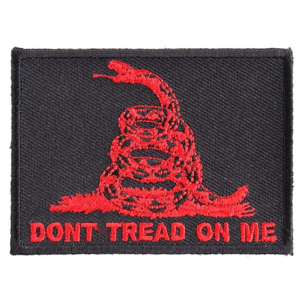 Don't Tread On Me Gadsden Flag Red Over Black Patch - 3x2.25 inch. Embroidered Iron on Patch