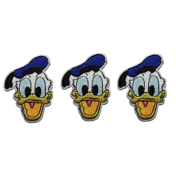- Donald Duck Head Shot 2 3/4" Tall Embroidered Set of 3 Patches