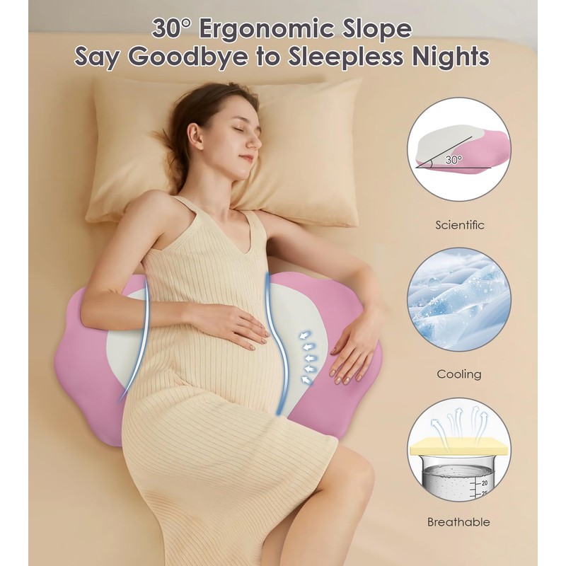 - Instant Cooling & Breathable: Made with high-quality icy-silk fabric, the pillow is soft, comfortable, and breathable, delivering a considerate user experience for expectant mothers. OEKO-TEX certified fabric with cooling technology keeps you sweat-free all night. Ideal for hot flashes during pregnancy.
