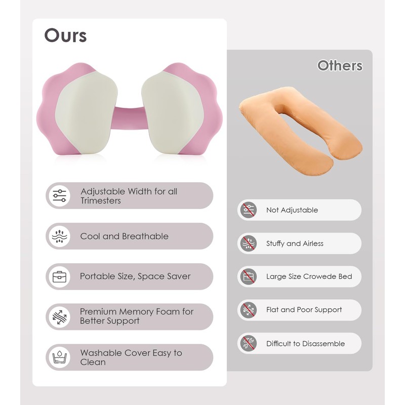 - Secure Snap-On Design + Easy Care: No more midnight pillow collapses! Our Memory Foam Pregnancy pillows connected by durable snap buttons (vs. flimsy Velco) keep the pillow firmly in place92% of moms report fewer wake-ups. The machine-washable cover saves time, and the foam core resists flattening for years.