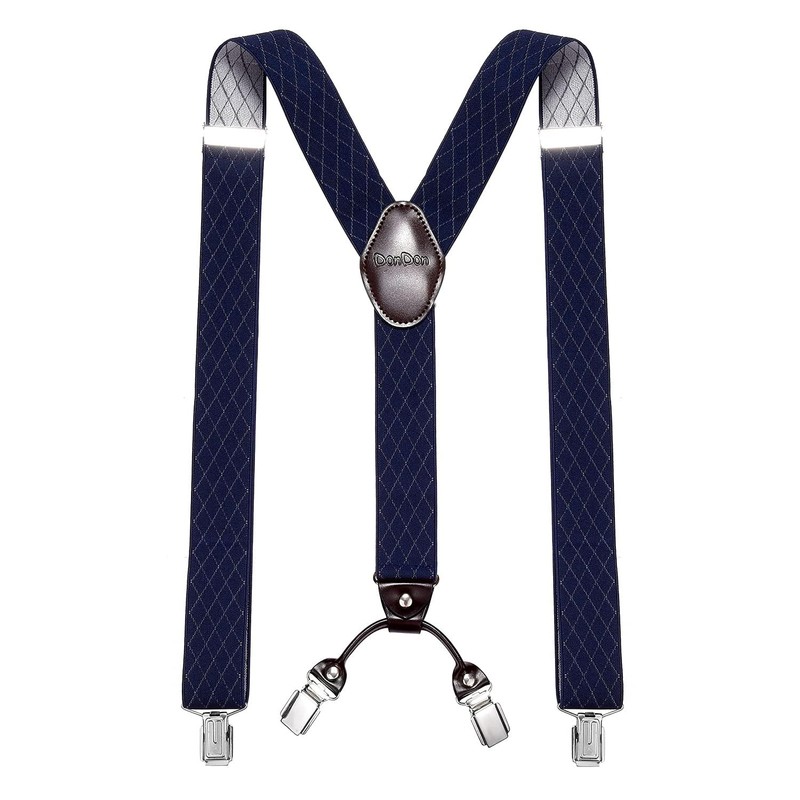 DonDon Men's Braces Extra Strong 3.5 cm Wide with 4 Braces Clips in Y-Shape and Brown Leather Patch, Diamond Blue