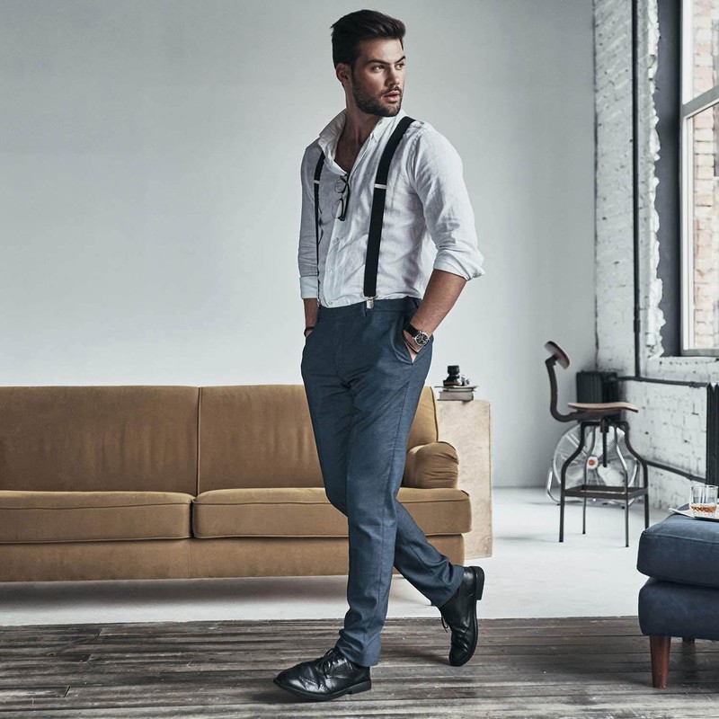 - MENS SUSPENERS Our slim braces for men are the ideal accessory for stylish suits. The 2.5 cm narrow braces design can be perfectly combined with a bow tie or tie