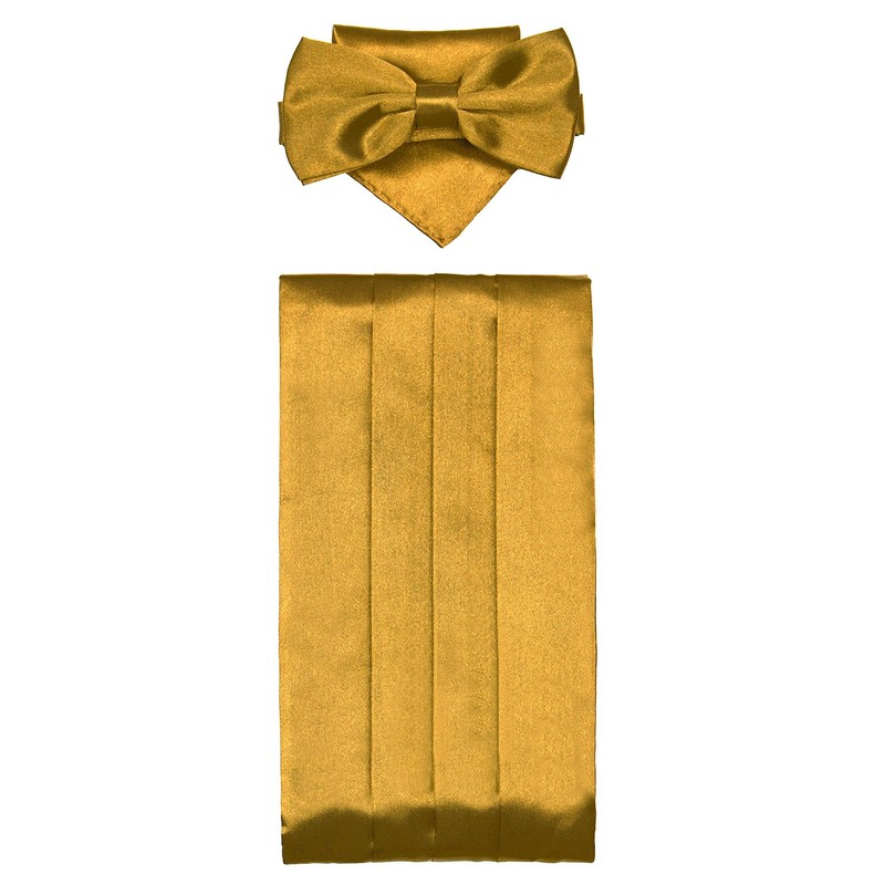DonDon Men's triple pack with colour coordinated cummerbund bow tie breast pocket handkerchief perfect for special occassions - Gold