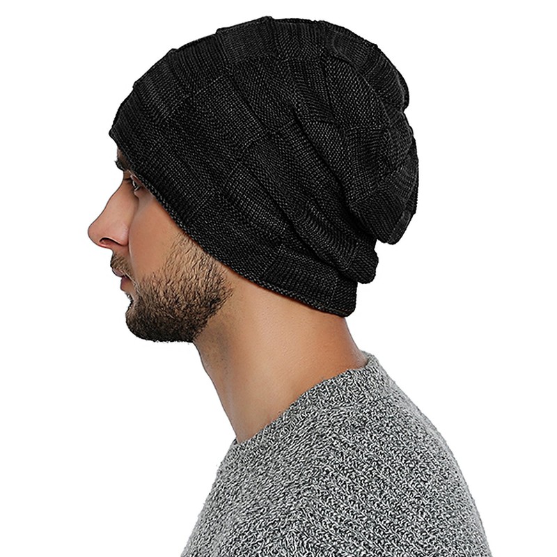 DonDon Men's Winter Long Beanie Hat with Teddy Fleece - black - grey