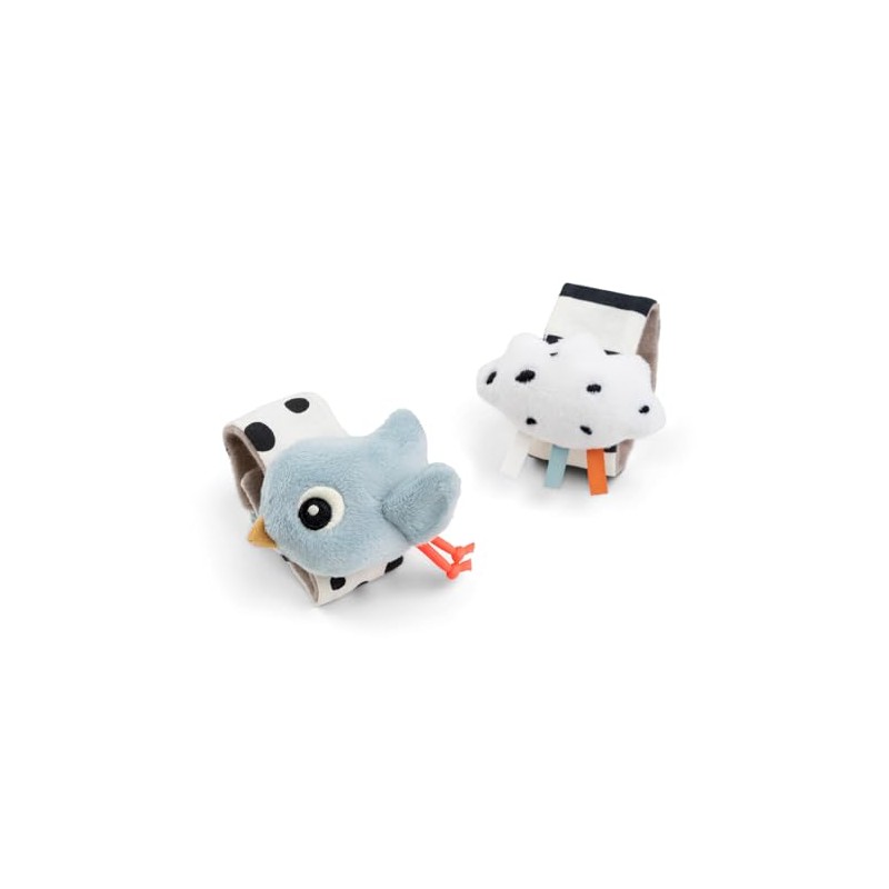 Done by Deer Happy Clouds Rattle Bracelet Pack of 2 Blue – Perfect for Stimulating the Senses, Body Awareness and Recognizing Hands – Baby Toy from 0 Months – Velcro Fastener