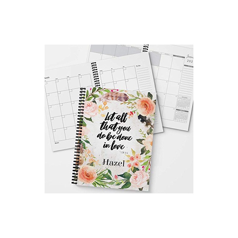 Done in Love Personalized Religious Monthly and Weekly Softcover Planner and Organizer, 1 full year, DATED or UNDATED OPTION, 5.5" x 8.5", lay flat wire-o spiral binding