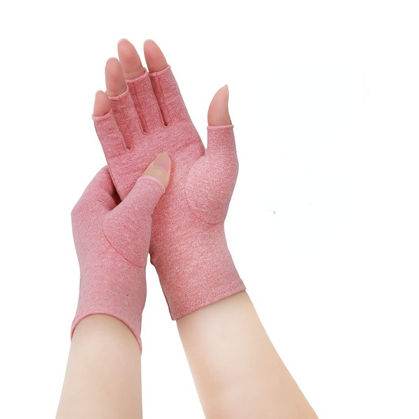 [DONFRI] 指 サポーター 指のサポーター 五本指 手のひら サポーター 薄い手袋 指なしグローブ ゲーミング手袋 (Lサイズ (x 1), ピンク)