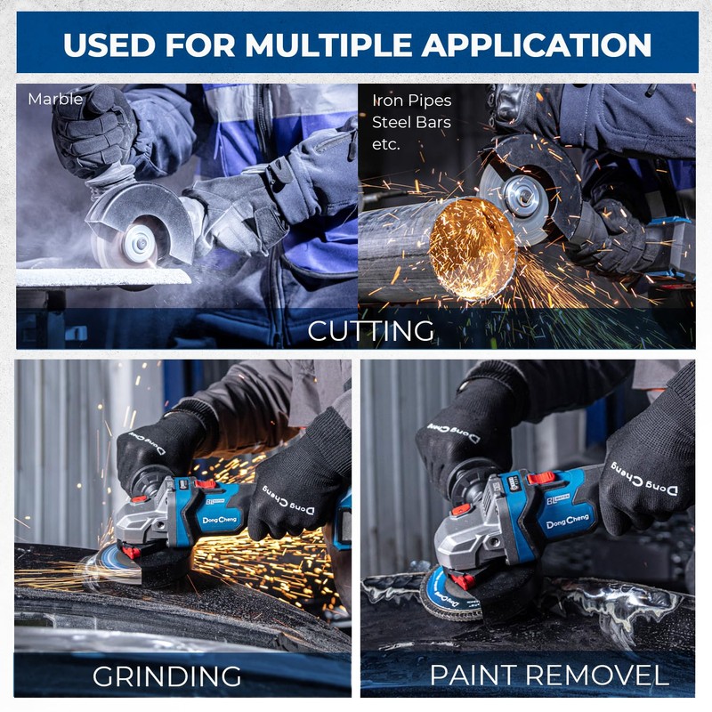 Dong Cheng Dong Cheng Cordless Angle Grinder 20V 4-1/2 inch, 9000RPM with Variable Speed, Slide Switch, DSC Protection for Cutting, Grinding, Polishing, Included 6 Discs & 4.0Ah Battery Charger Kit