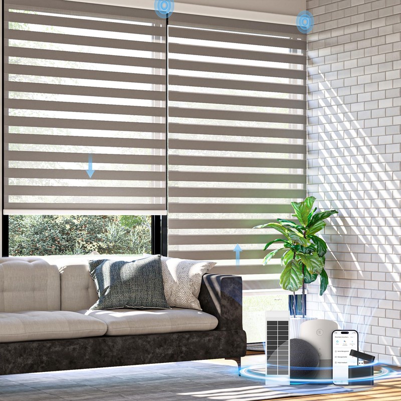 - 【APP/Voice And Other Control Methods Motorized Zebra Blinds】:Upgrade your home decor and enjoy cutting-edge technology and stylish design with our advanced motorized zebra blinds. With a group remote control, a single press can adjust all the blinds in your home (up to 15); The smart motor feature also enables voice commands via a hub to manage your blinds (up to 30). Plus, the motor operates quietly, ensuring your peace isn't disturbed, making your living space even more exceptional.