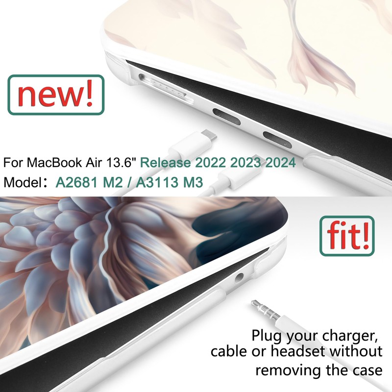 - For NEWEST MACBOOK Air 13.6 INCH CASE - Only Design for MacBook Air 13.6 inch 2022 2023 2024 with Retina Display & Touch ID (Model: A2681 M2 / A3113 M3). Check your device model before purchasing.