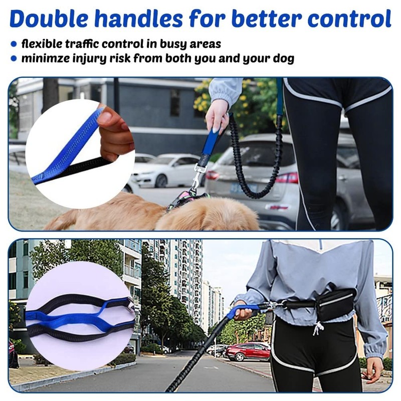 DONGKER Bungee Dog Leash, 3.9ft/4.9ft 360º Rotating Waist Double Ended Dog Leash Dual-Handle Shock Absorbing Reflective Bunge for Small Medium Large Dogs (without Waist Pack and belt)