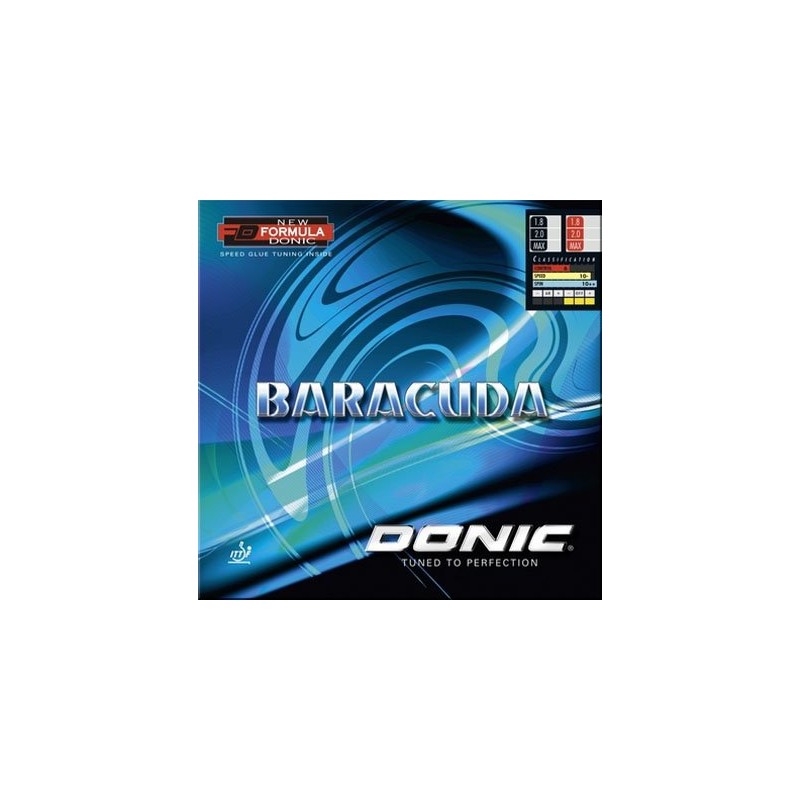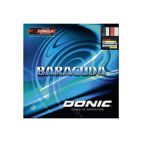_The Rubber with vicious spin!_ The new Formula Donic Baracuda rubber with built-in speed glue effect produces fantastic spin. The ball leaves the blade in a noticeably higher arc, giving considerably more spin. The increased rotation of the ball stabilizes the shot and increases speed. Shot accuracy is visibly improved even for top players. Baracuda offers that extra margin of safety and touch even in the tightest situation. In addition, Baracuda's top rubber surface has been newly constructed to be more durable than similar rubbers, resulting in more playing hours with a surface that is less prone to damage.