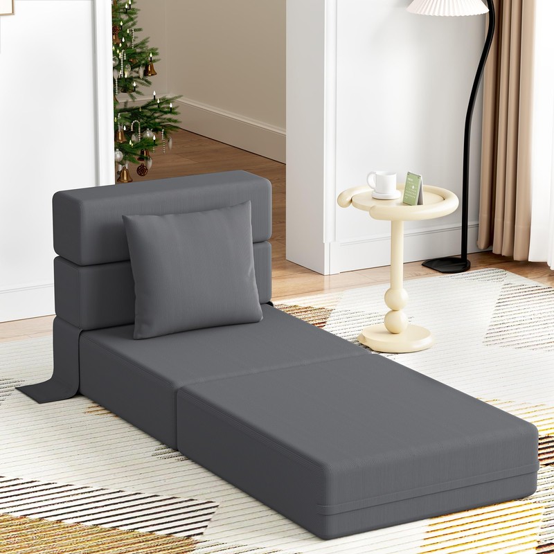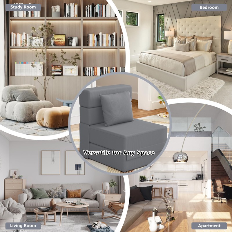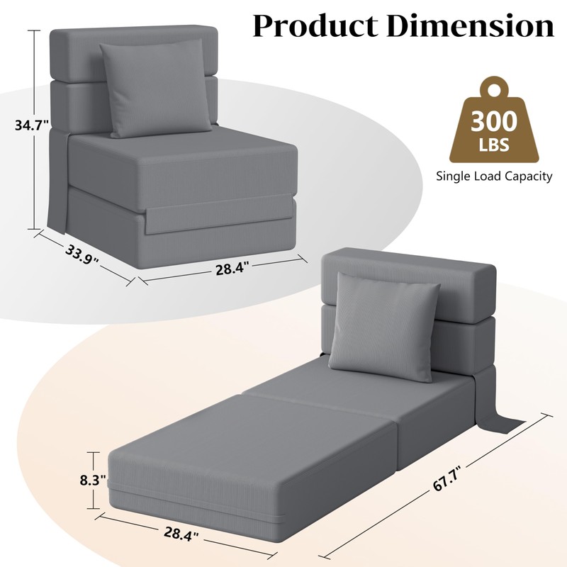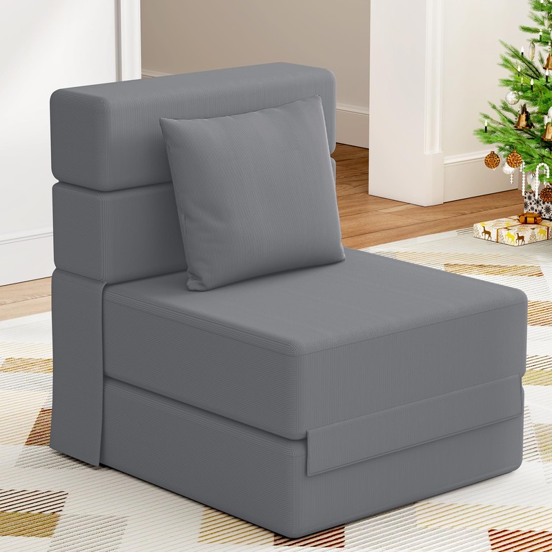 DONICK Grey Corduroy Folding Sofa Bed Couch with Pillow Modern High Density Foam Folding Sleeper Sofa Chair Bed Floor Mattress Futon Couch for Living Room Bedroom Office Apartment