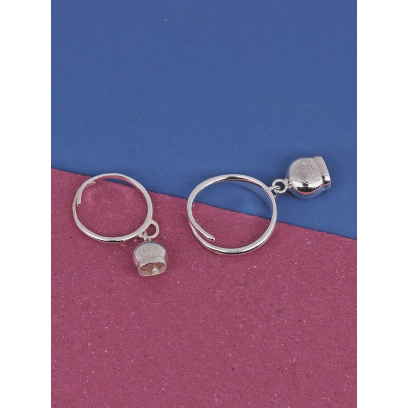 Donipreziosi Adjustable Ring with Capri Bell in White 925% Silver Made in Italy - Ring with Bell Pendant, Silver, Not applicable
