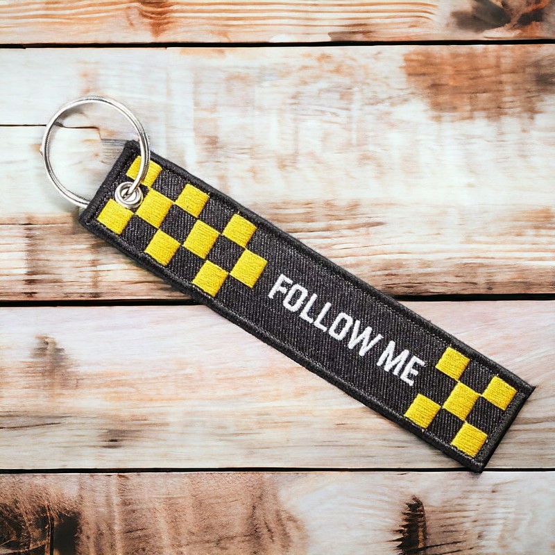 DonJordi Follow Me Fabric Keyring with Embroidery for Pilots, Bikers and Aviation Lovers, black