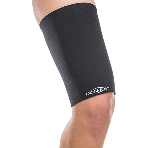 - Universal fit allows the DonJoy Neoprene Thigh Support / Compression Sleeve to be worn on either the left or right leg