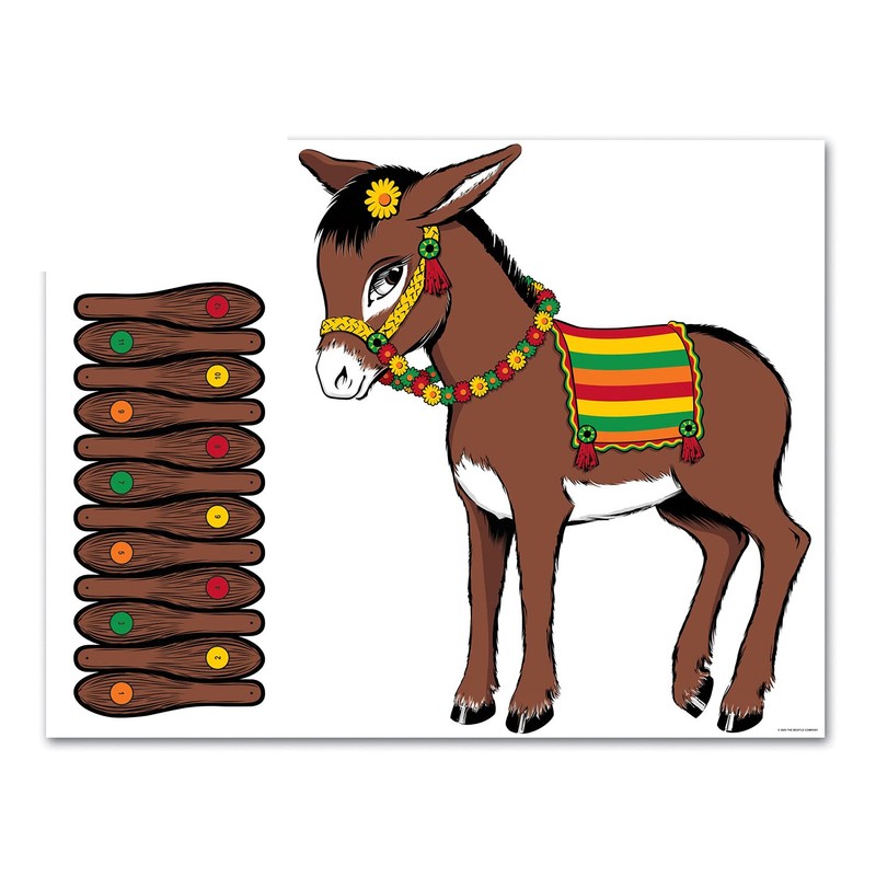 Beistle 66668 Donkey game. Have some fun and "pin The tail on the Donkey" At a birthday party! This game is a fun game for everyone to play! There is 1 mask and 12 tails included.
