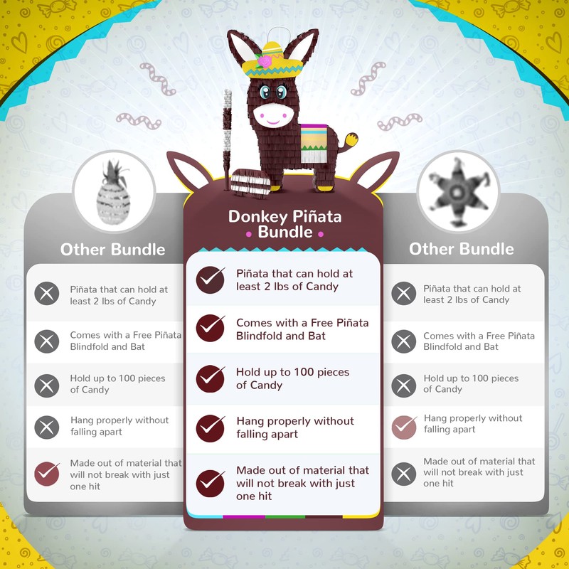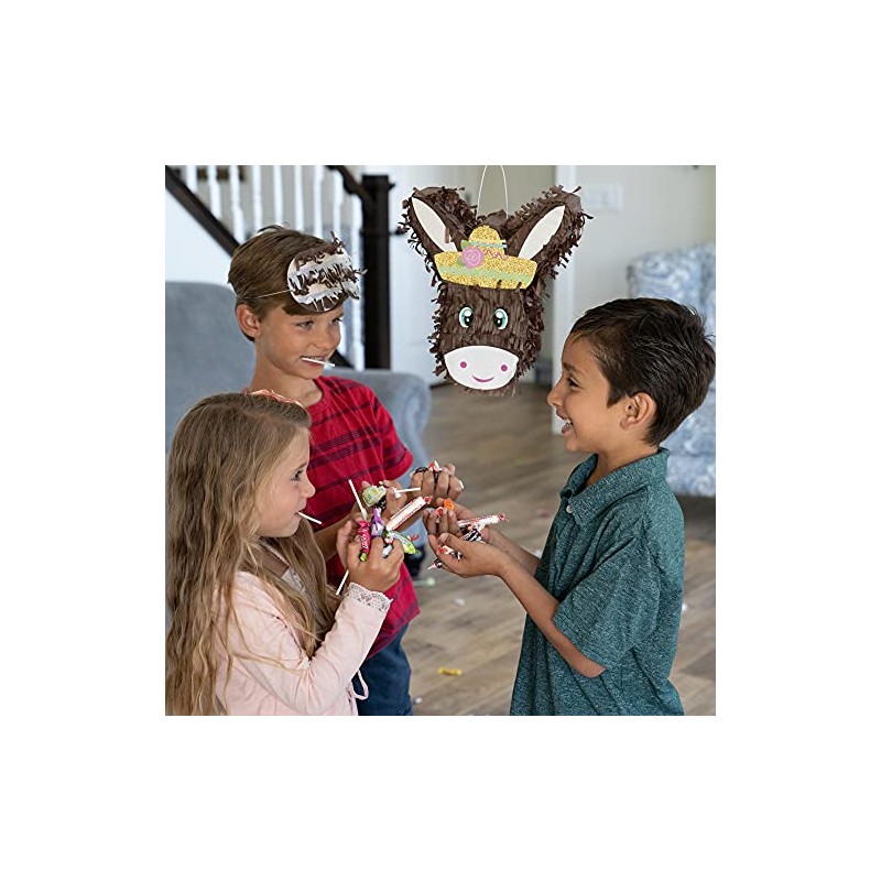 - THROW AN AMAZING PARTY: CarsonChase Donkey Pinata set for baby birthday party supplies is an amazing celebration gift for your kids. Our pinatas comes with a blindfold and bat to make the event more fun and magical. Kids absolutely love these piñata!