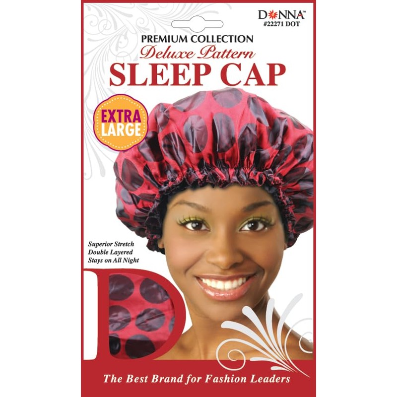 DONNA Deluxe Pattern Sleep Cap Hair Sleep Shower Cap Bonnet Bonnet for Sleeping Hat White DOT