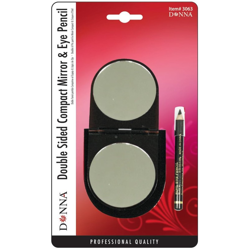 DONNA Double Sided Compact Mirror, Black Eye Pencil