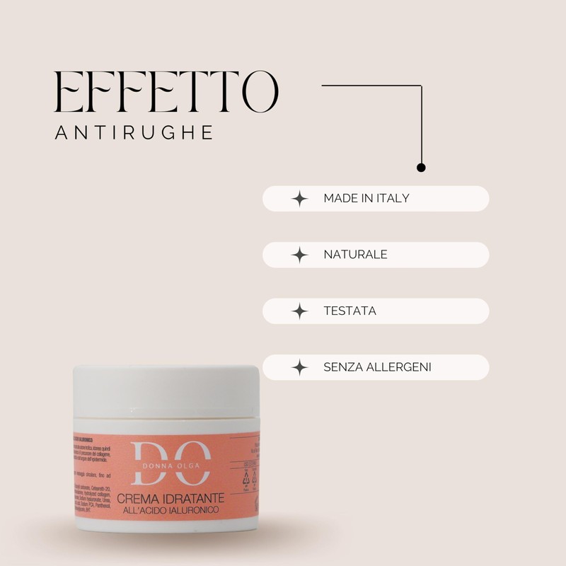 Donna Olga Gesichtscreme mit reiner Hyaluronsäure, 50 ml, feuchtigkeitsspendende Gesichtscreme, hypoallergen, Anti-Falten mit Hyaluronsäure für das Gesicht, Anti-Falten-Creme für Damen und Herren