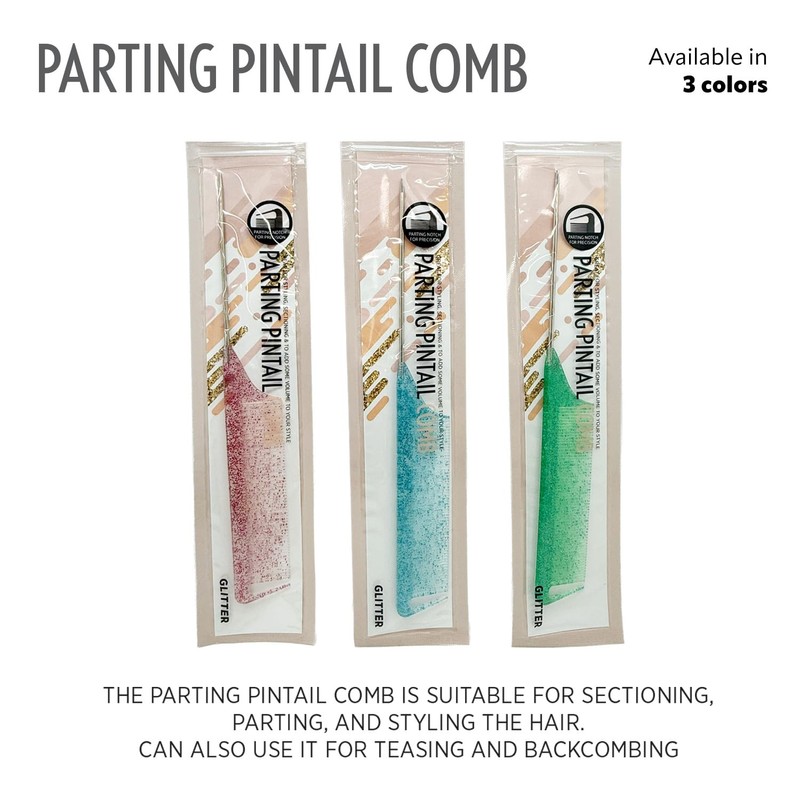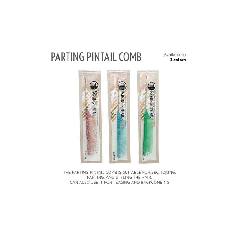 Donna Pin Tail Parting Comb – Heat Resistant Teasing Tool, BLUE GLITTER 1PC