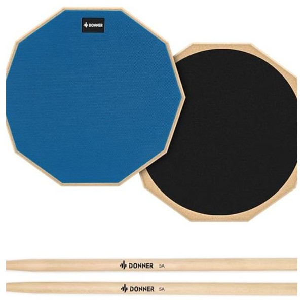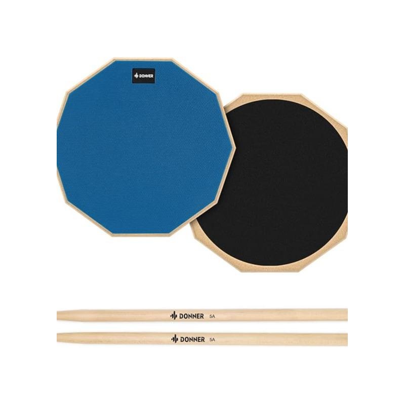 - Donner Drum Practice Pad 8 Inches, Silent Practice Drum Pad 2-Sided With Drum Sticks - Gray/Blue