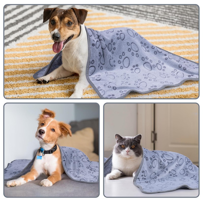 Dono 1 Pack 3 Dog Blankets, Soft Fluffy Fleece Pet Blanket Warm Sleep Mat Paw Print Design Puppy Kitten Throw Blankets Doggy Blanket for Dogs