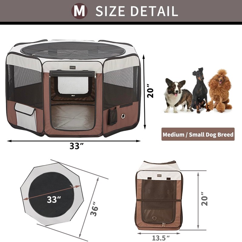 DONORO Dog Playpen 36" Portable Pet Play Pens for Small Dog/Cat/Rabbit/Chicks, Foldable Exercise Kennel Tent Crate Indoor/Outdoor Travel Camping, Removable Top/Bottom (Brown, Medium (36"x36"x20"), 8)