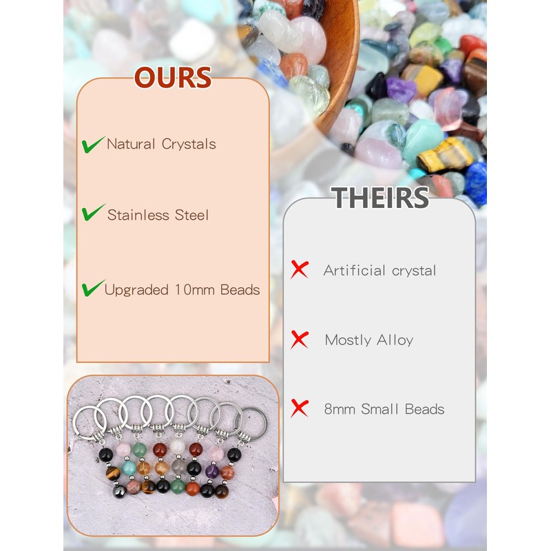 - Natural Crystal Keychain:This crystal keychain for women is made of natural crystal healing stones,containing natural energy and symbolizing beauty and strength.Each stone is carefully selected and has its own attributes and energy.There are 8 themes to choose from: New Beginnings,Good Luck,Anxiety Relief,Positive Vibes,Protection,Courage,Safe Travels and Best Friend Forever.