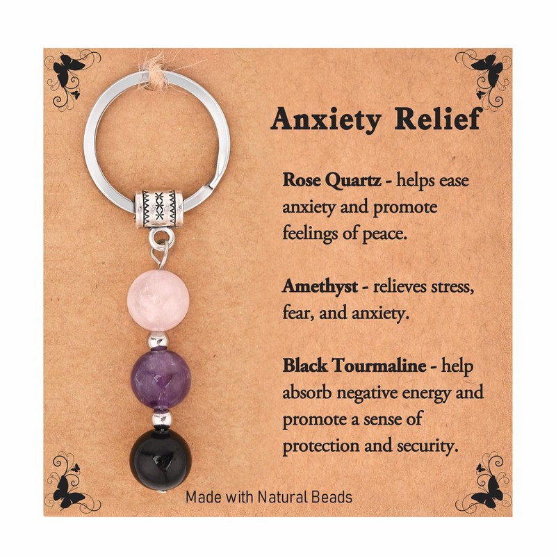 - Anxiety Relief:This anxiety relief gifts for women comes with 3 crystal beads and a card describing each bead and their healing properties.Rose Quartz help ease anxiety and promote feelings of peace.Amethyst relives stress,fear and anxiety.Black Tourmaline help absorb negative energy and promote a sense of protection and security.
