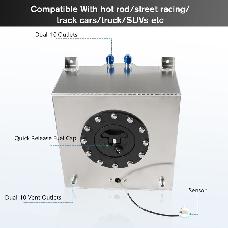 - Application: The fuel cell is universal compatible with hot rod/street racing/track cars/truck/SUVs etc