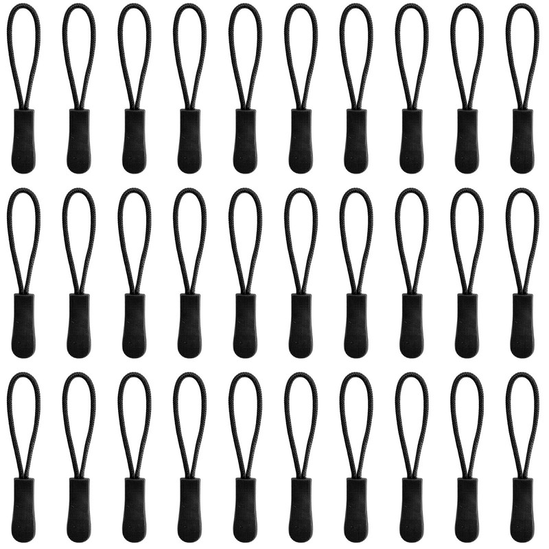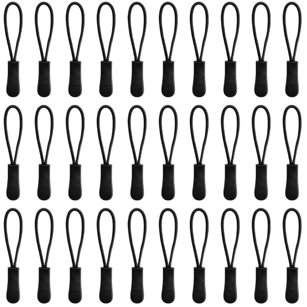 DONQL Pack of 30 Zip Handle Replacement Zipper Pulls Nylon Zip Straps for Clothing Backpack Outdoor Sports Crafts (Black)