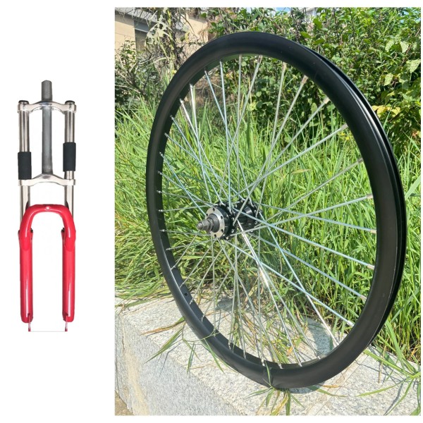 DONSP1986 26" Bike Suspension Red Fork, 1-1/8" Threadless w/ Mag/Spoke Wheel - 10G 36S Spoke Front
