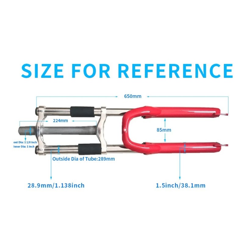 - Outside Diameter of Up Tube:2.89cm/1.138inch and 38.1mm/1.5 inch for lower leg, Suspension forks does not work well with Bicycle handle bar which fits well on out leg diameter 3.15cm to 3.18cm(1.24inch to 1.25inch) of triple tree fork