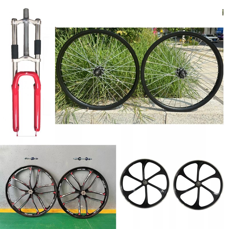 DONSP1986 26" Bike Suspension Red Fork, 1-1/8" Threadless w/ Mag/Spoke Wheel - 120mm Mag Wheel Set