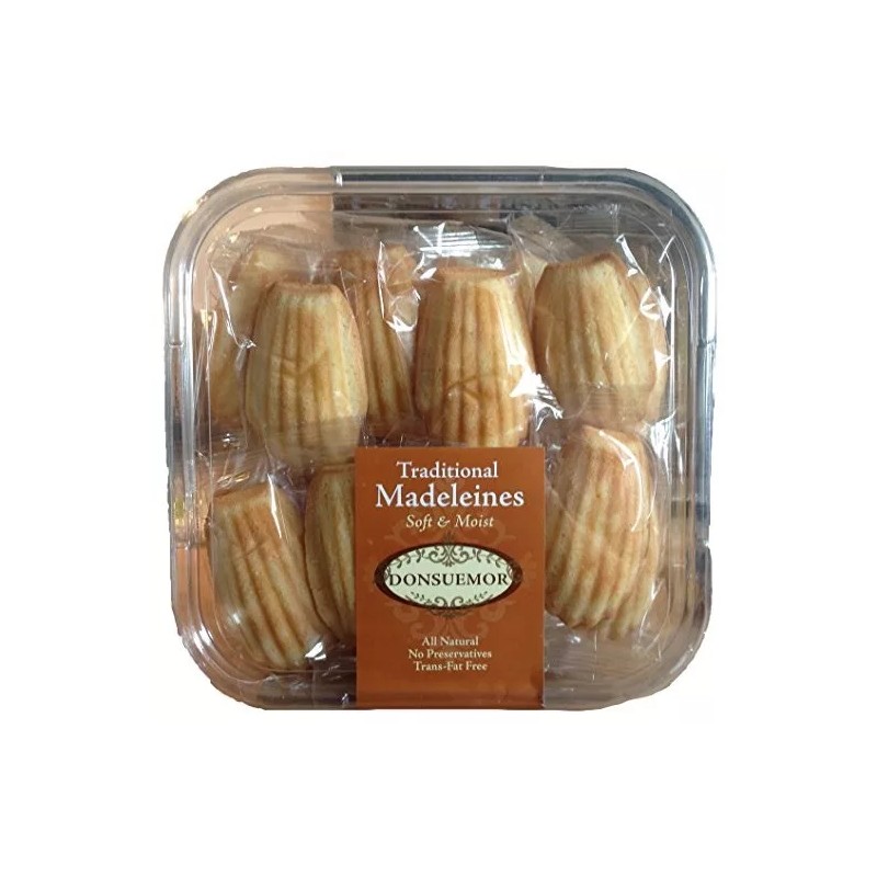 • All Donsuemor products are immediately packaged to maintain freshness. Madeleines have a 30 day shelf life at ambient temperature from date of production or a 6 month shelf life if frozen. Best practice is to store madeleines in the freezer and pull out as needed. Allow to thaw at ambient temperature before serving.