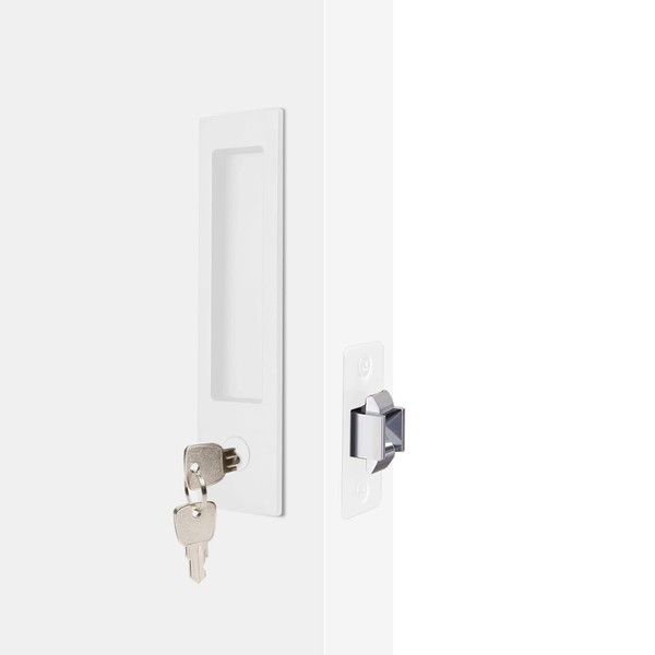 Dontay Pocket Door Handle, Modern Rectangular Keyed Entry Function, (Bed/Bath) Pull Latch, Recessed Sliding Door Hardware for 1 3/8” to 2 3/16” Thickness (Keyed Entry Lock, White, 2 Pack)