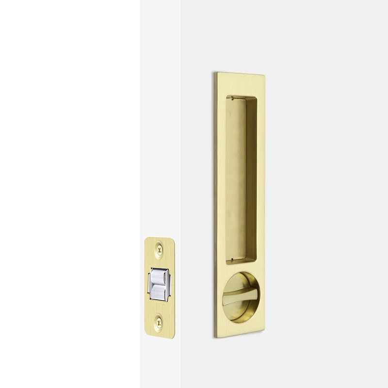 Dontay Pocket Door Handle with Lock, Narrow Modern Rectangular Keyed Entry Function, (Bed/Bath) Pull Latch, Recessed Sliding Door Hardware for 1 3/8” to 2 3/16” Thickness Door (1, Satin Brass)