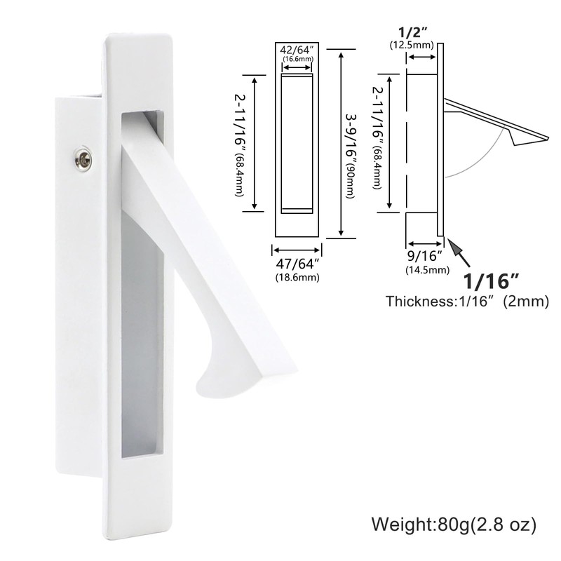 Dontay Pocket Door Pull Handle, Edge Pull, Professional Stainless steel 304, Flush Mount Door Pull for Pocket Sliding Door (White, 1)