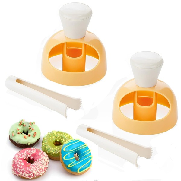 Donut Maker 2 Pack Plastic Donut Cutter Set with Dipping Pliers and Hole Punch for Frying and Baking (Yellow)