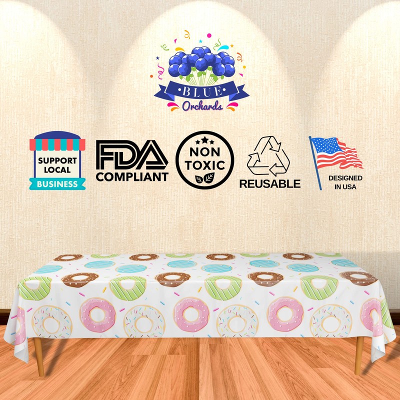 - [PERFECT DECORATION] These Donut Table Covers are a perfect complement to your donut themed birthday, baby shower, donut 1st birthday for kids, or other donut-themed event decorations. They will make your table settings look fantastic!