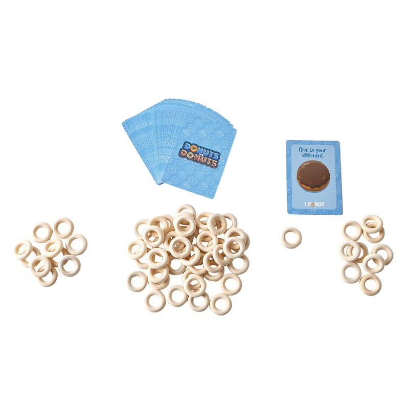 - Includes 61 Wooden Rings (AKA Pretend Donuts) and 32 Donuts vs Donuts Cards. Donut Tip: This game doesn't include real donuts, but it's always a fun game to play while enjoying your favorite donut from your local donut shop!