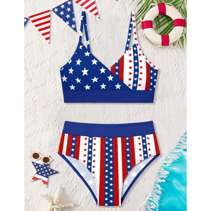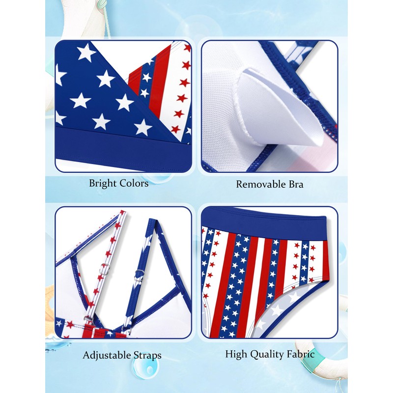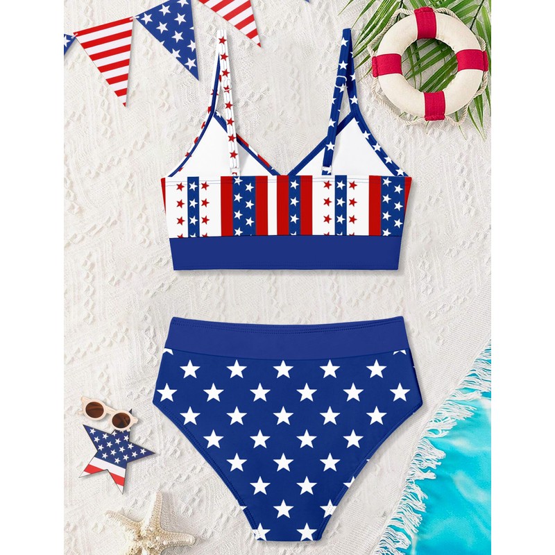 DONWEN Girls 4th of July Swimsuit 15-16 Years 4th of July Bathing Suit Girls Star Patriotic American Flag Print Fourth of July Bathing Suits for Girl USA Swimsuit