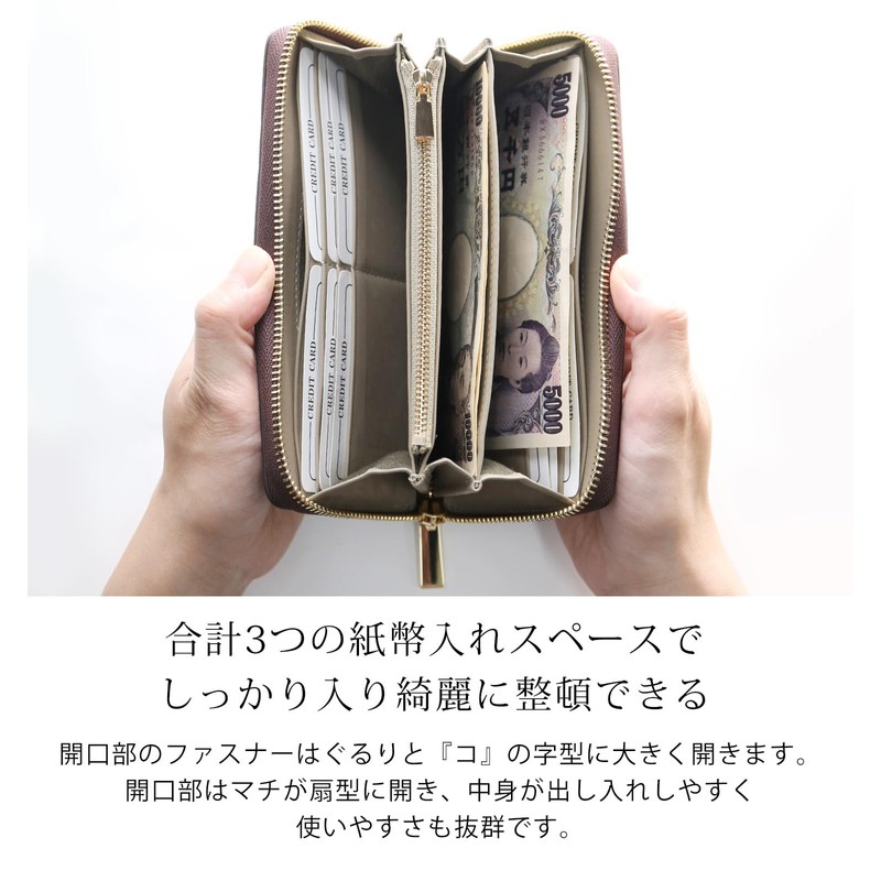• Round Zipper Long Wallet: This long wallet has a round zipper that can be opened and closed in the shape of a "ko" that makes it easy to insert and remove the contents easily