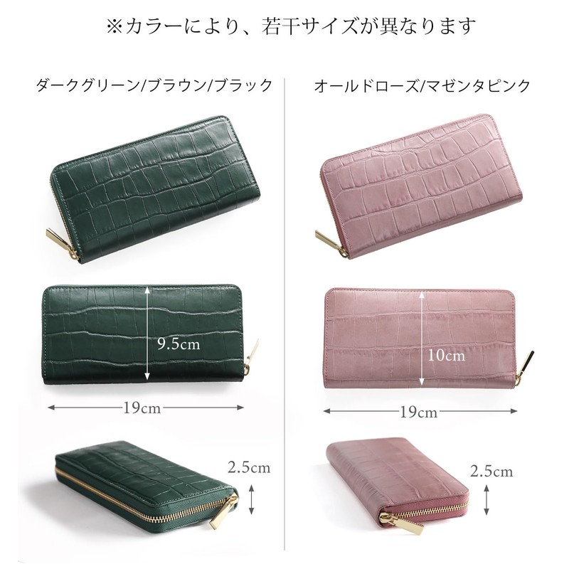 • [Specifications] Size (W x H x D): 7.5 x 3.7 x 1.0 inches (19 x 9.5 x 2.5 cm). *Old rose and magenta pink are approximately 3.9 inches (10 cm). Weight: Approx. 8.1 oz (230 g); Material: Front: Cowhide leather; Interior: Cowhide leather; Fabric: Country of Origin: Italy (tanned), Vietnam (sewing); Inner Storage: Bill compartment x 3, Zippered coin purse x 1, Card holder x 12, Wide pocket x 2