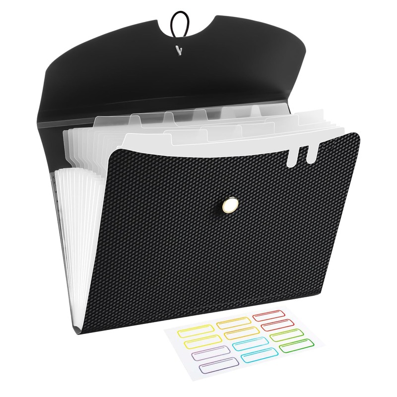 - DoocliB Document File, A4, 7 Pockets, Portable, Expanded File Folder, Horizontal Type, Accordion File, Divided Label, Large Capacity, Jabbalah File, Document Case, Classification Storage, Stationery, School, Office Supplies, (Black)
