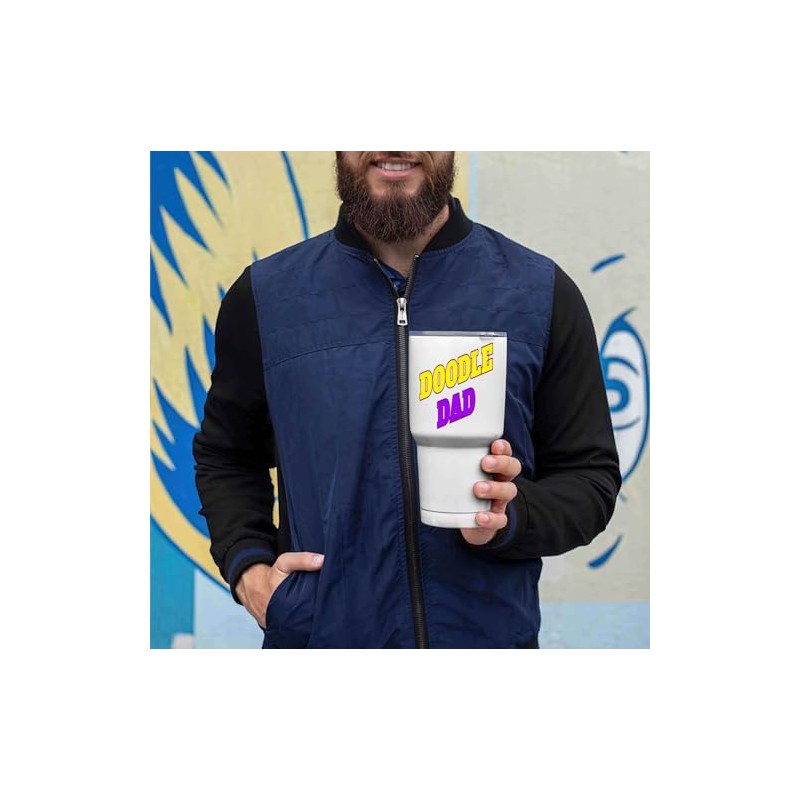 Doodle Dad's Fathers Day Gift Idea - Unique Gift Idea for Dad - Creative Message on 30 Oz White Stainless Steel Large Tumbler