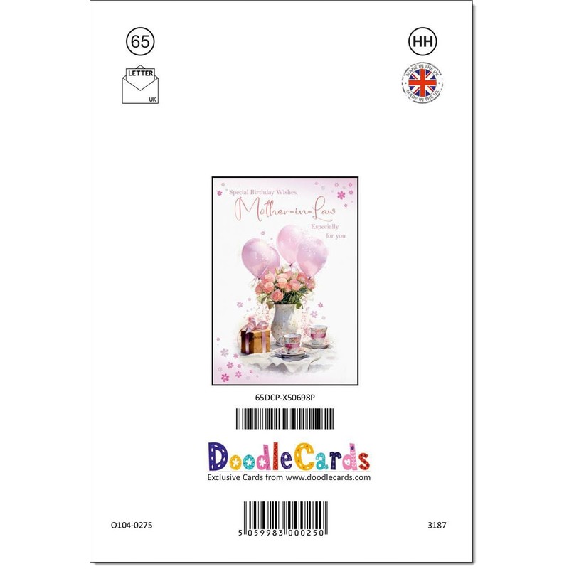 doodlecards Mother-in-Law Birthday Card Tea Party and Balloons Medium Size with Plain Envelope